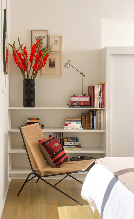 Classic mid-century modern architecture is showcased in this perfectly staged Rudolph Schindler house. Highlighted by period furniture pieces and curated decorative elements, vases, books and pillows, the interior spaces feel designed and welcoming. Fresh flowers bring nature indoors, fill the air with fragrant blooms, making the spaces feel like they are shelter magazine ready.