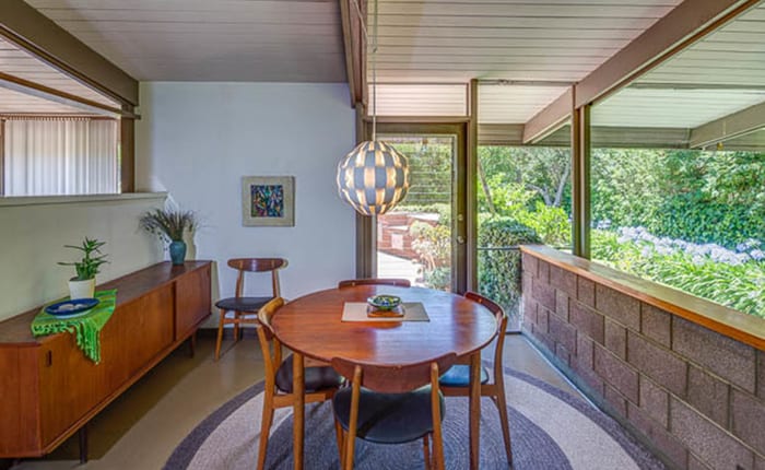 In the upscale neighborhood of Brentwood’s Crestwood Hills, the Grant House sits amidst a collection of architectural properties crafted by renowned architects including Jones, Richard Neutra and Craig Ellwood. This iconic residence stands as a testimony to the allure of mid-century modern design. Inside of the home you’ll find a meticulously curated interior complete with original fixtures and furniture, offering an evocative portrayal of post-war America.