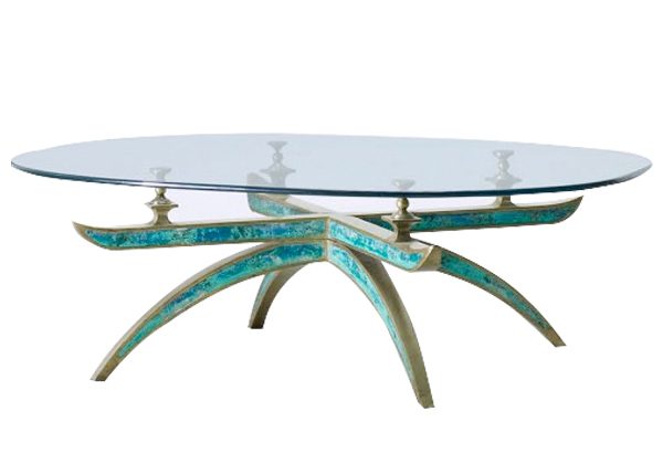 Coffee table in brass, ceramic and glass along with Mendoza’s classic cloisonné technique, c. 1960.