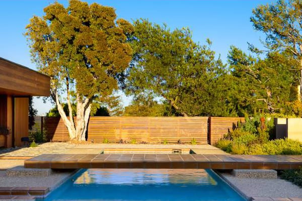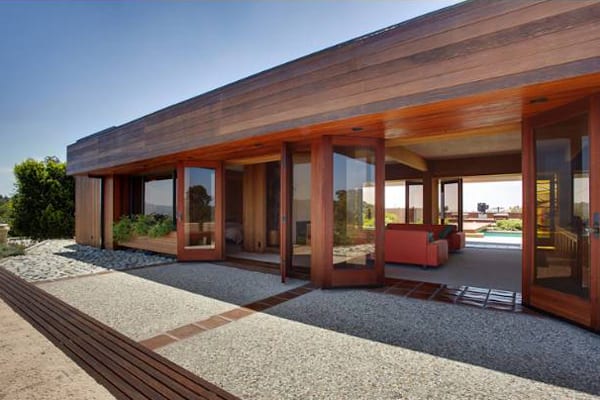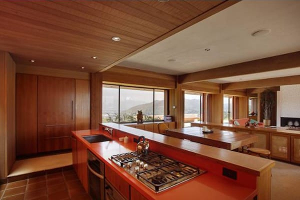 This iconic Buff & Hensman home boasts a “perched on a promontory like a luxury railway car” design with two-way views, according to the Los Angeles Times, and is trimmed down to essentials so as to create an open frame for the holistic living space offered by patios and pool (more than 2 times the interior area).