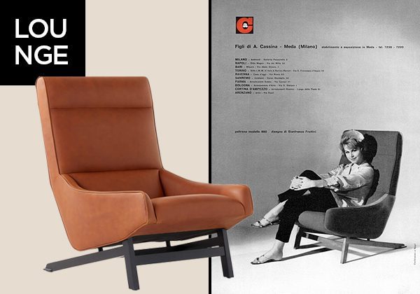 Gianfranco’s Frattini’s 880 Lounge Chair, originally designed in the late 1950s for Cassina, has been reintroduced through CB2’s Design Legends offering.