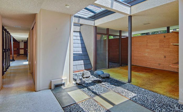An interior courtyard brings sunlight into the middle of the home. Imagine this space tricked out with sago palms and lush tropical foliage, simply superb, not to mention the health benefits of an abundance of indoor plant life.