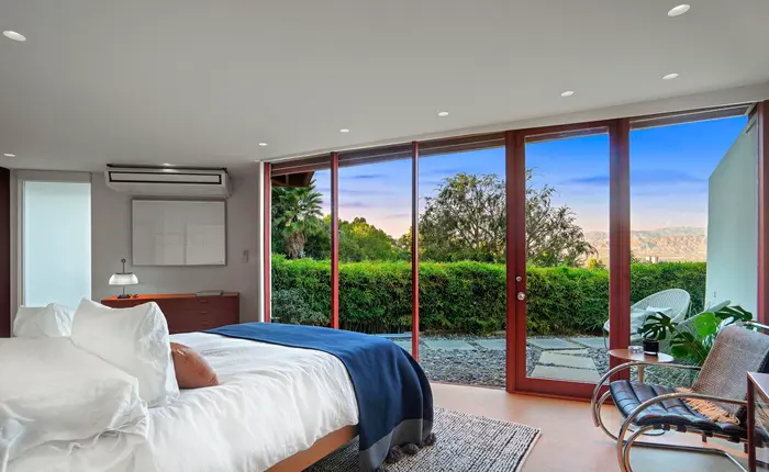 The restoration of the house was carried out with great care so that Lautner’s original design would be preserved while modernizing amenities for today’s living. Top-of-the-line systems, updated appliances, and integrated lighting all contribute to the home’s modernity. The result is a truly unique property that retains its original character and design aesthetics.