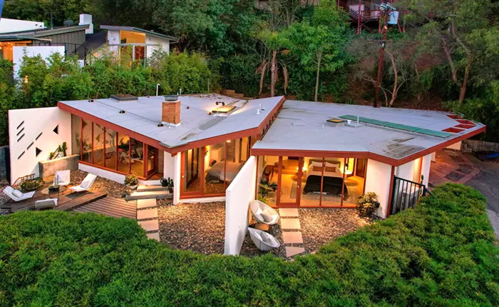 The John Lautner Bergren Residence is one of the most iconic houses designed by the renowned architect. Built in 1953, the mid century modern house is situated on a hillside in a desirable area of Los Angeles and offers stunning views of Universal City below.