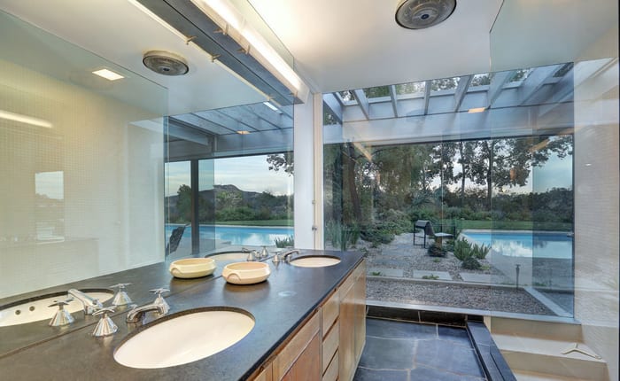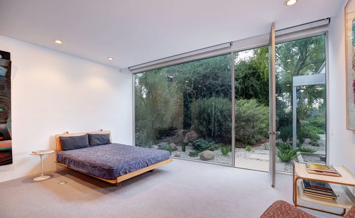 A master suite and bath addition, Baskerville addition by Escher Gune Wardena, artfully occupies the location that Neutra had planned for a future bedroom in the archival plans.