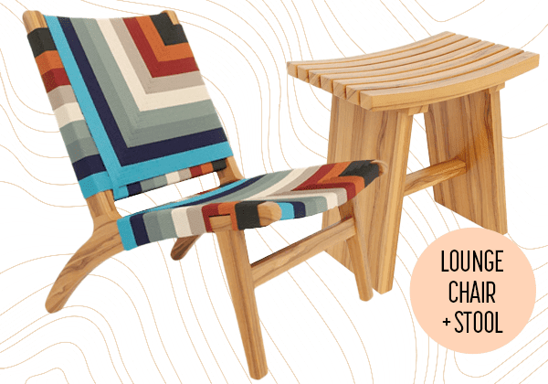 Masaya & Co’s furniture is purposefully made. The pieces are crafted of quality materials and blend modern design trends with traditional production methods. The Masaya Lounge Chair is our favorite piece. It’s the perfect combination of stylish and casual, with a minimal profile, handwoven seat and backrest on a solid wood frame. We love this eye-catching Vasqueno pattern, a vibrant geometric design in a bright color palette that will artfully liven up your living space. The chair works beautifully in a mid century modern house with a warm bohemian flair, or a Spanish home celebrating all things handcrafted.