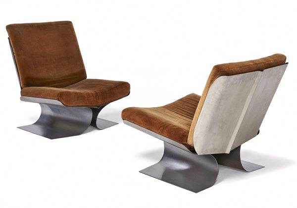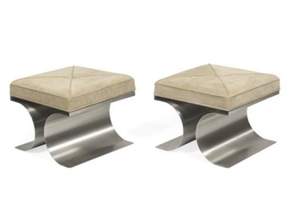 Pair of X stools, Michel Boyer used the materials of his era in these privileged curvilinear architectural forms, c. 1970s.