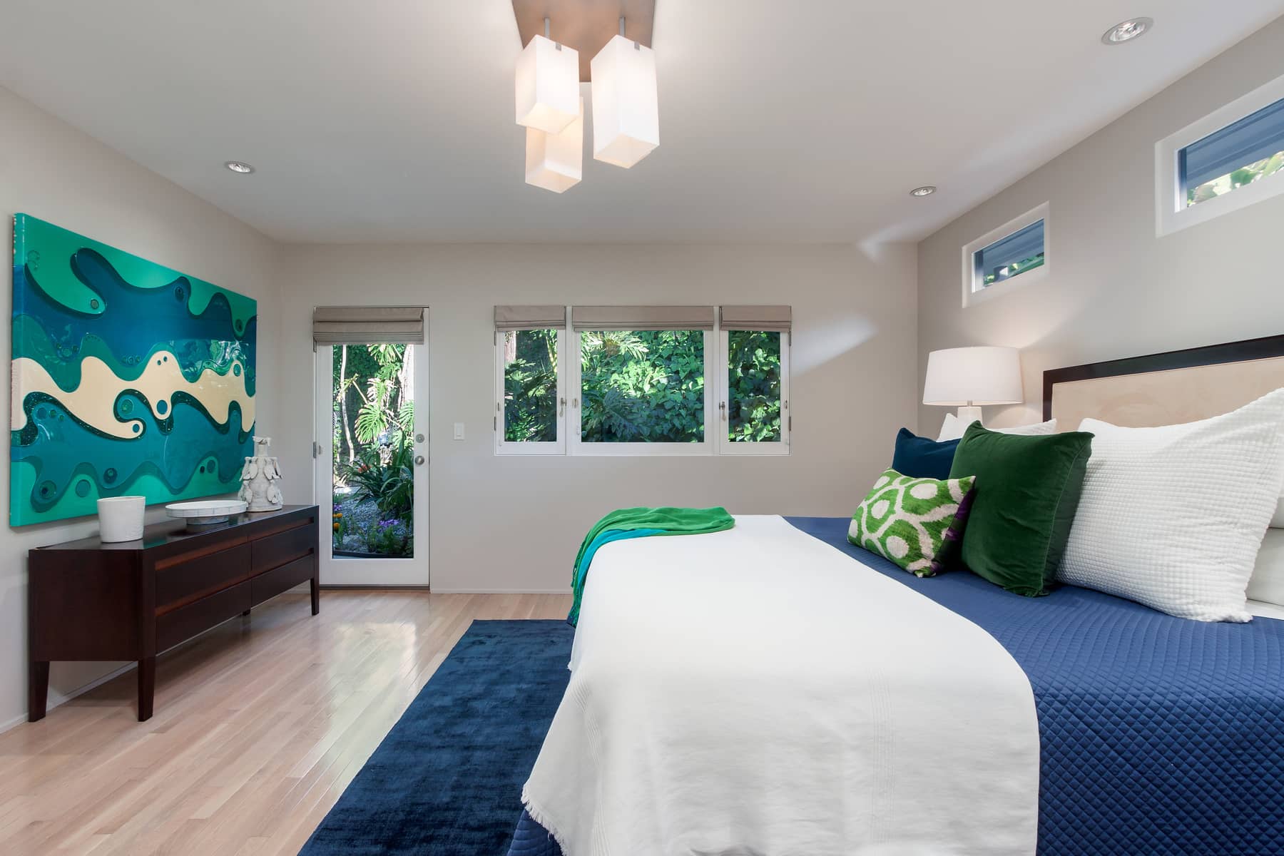 The large third bedroom with its vaulted ceilings and en-suite bath is perfect as an additional master or creative space.