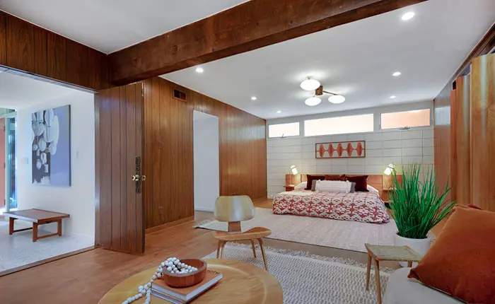 What’s not to love about this primary bedroom with a separate seating area ready for all your mid century furniture pieces? With all the latest amenities, this classic home is ready for modern living. You’ll be able to enjoy living the classic mid century lifestyle while enjoying brand-new air conditioning and heating systems, as well as fully updated electrical and plumbing systems.
