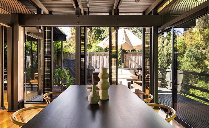 An unmatched blend of artistry and utility, The Robert Thorgusen Residence unveils itself as a true testament to mid-century modernist genius, envisioned by architect Robert “Boulder” Thorgusen. Thorgusen, intimately tied to the creative soul of Laurel Canyon, was a pioneer who pushed the boundaries of post-and-beam design. With every corner and contour, this masterpiece celebrates his passion for seamlessly marrying architecture and nature.