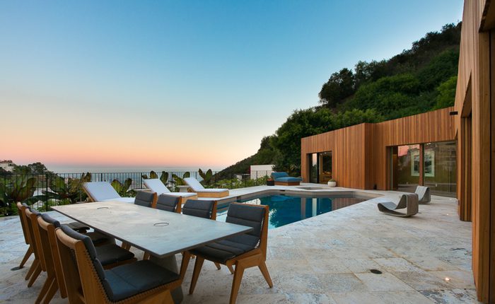 The exterior is finished with Balau wood and cross-cut Travertine surrounded by attractive lush landscaping. Inside, nearly every room in the home boasts incredible city views and flows seamlessly to the outdoors.