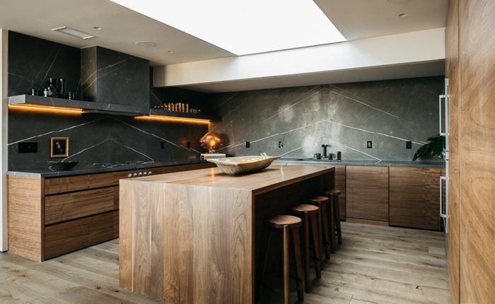 The bespoke walnut and Greystone kitchen are a cook’s dream. An expansive master suite, complete with spa-like bathroom and large walk-in closet, overlooks the glistening pool and sweeping views of the city.