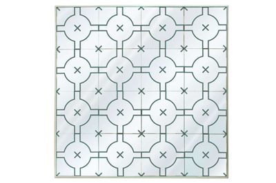 This is a rare mirror designed in the 1960s and has an amazing geometric bevel design in a lacquered mahogany frame; designed for Parzinger Originals.